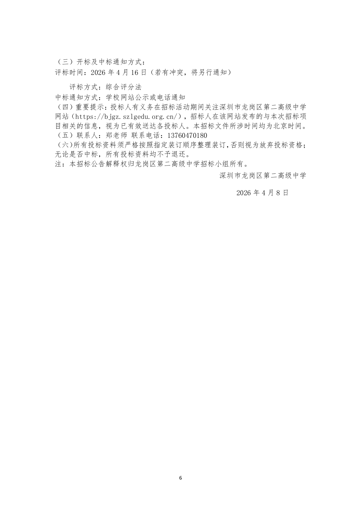 龙岗区第二高级中学2026年临时性校外用车框架服务采购项目校内招标结果公示
