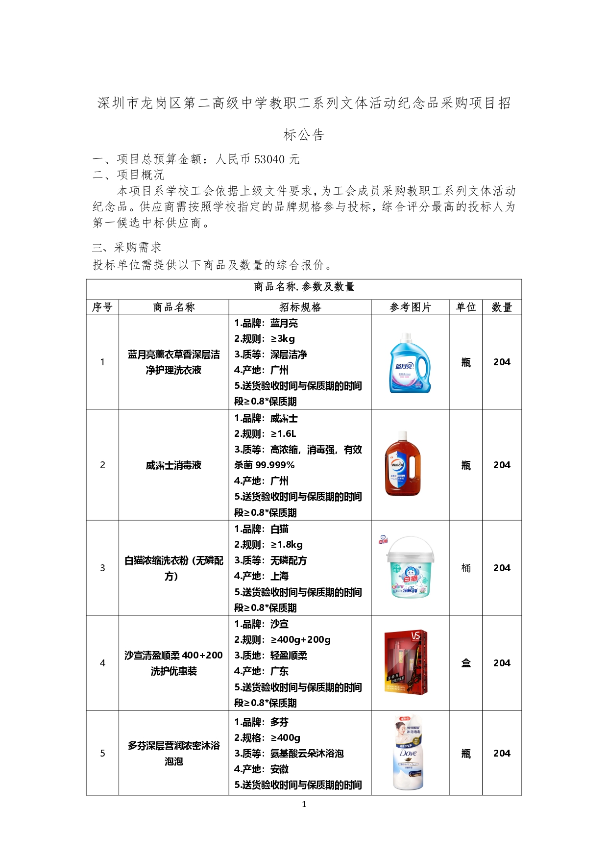 龙岗区第二高级中学工会教职工系列文体活动纪念品招标文件.pdf