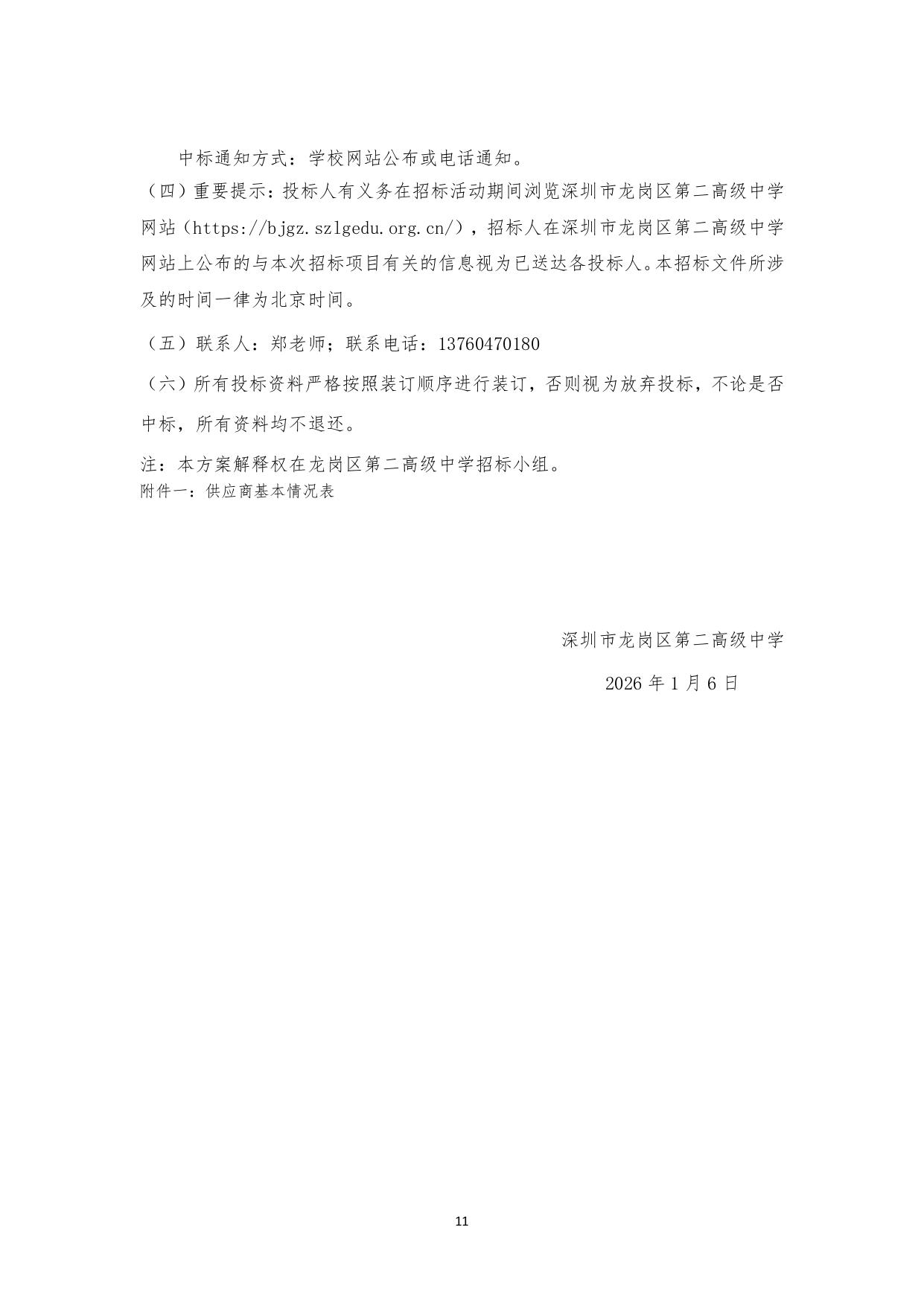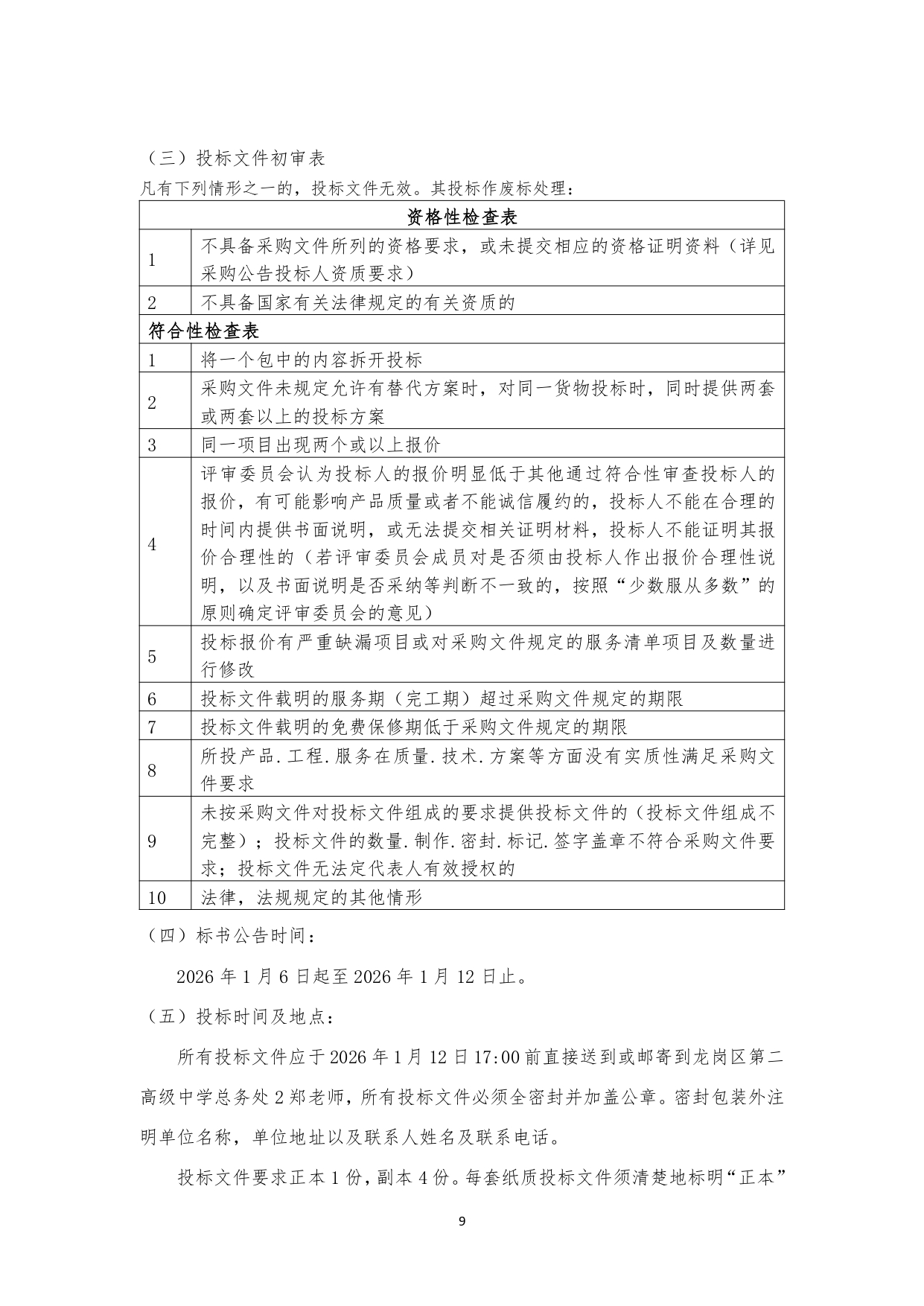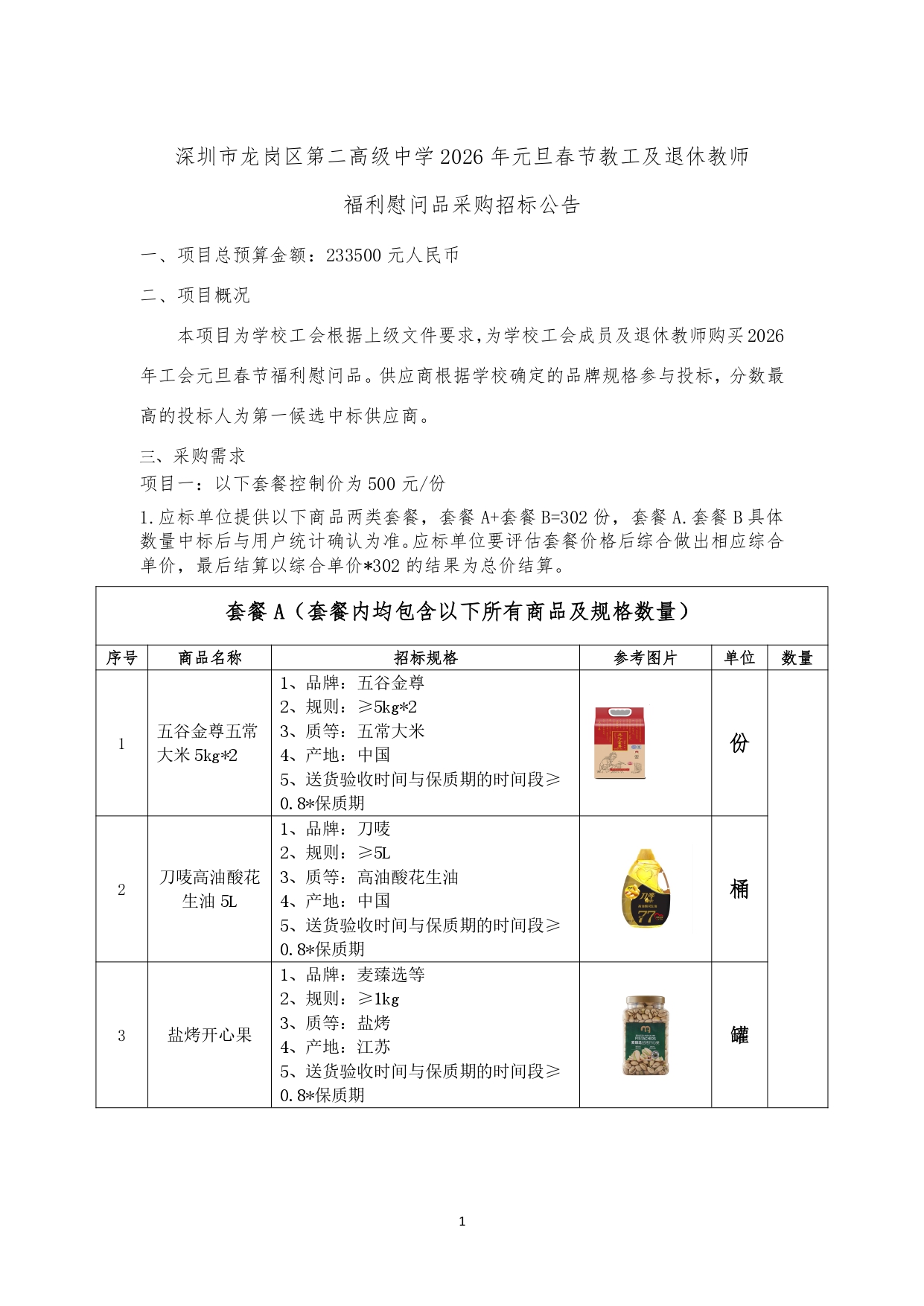 深圳市龙岗区第二高级中学 2026 年元旦春节教工及退休教师福利慰问品采购项目校内招标结果公示